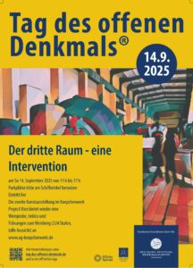 Am Tage des offenen Denkmals gilt die Öffnungszeit : 11 – 17 Uhr – viele der KünstlerInnen werden anwesend sein. Gastronomische Betreuung wie gewohnt durch das Team von Project:Vino. Musikalische Begleitung durch die Musikschule Herdecke (von 11-12 Uhr). Freier Eintritt !